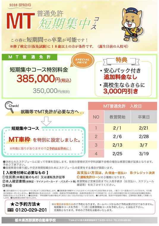 MT普通車【春の短期集中コース】