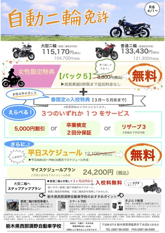 女性限定のプラン登場。これを機に二輪免許を取ってみませんか?